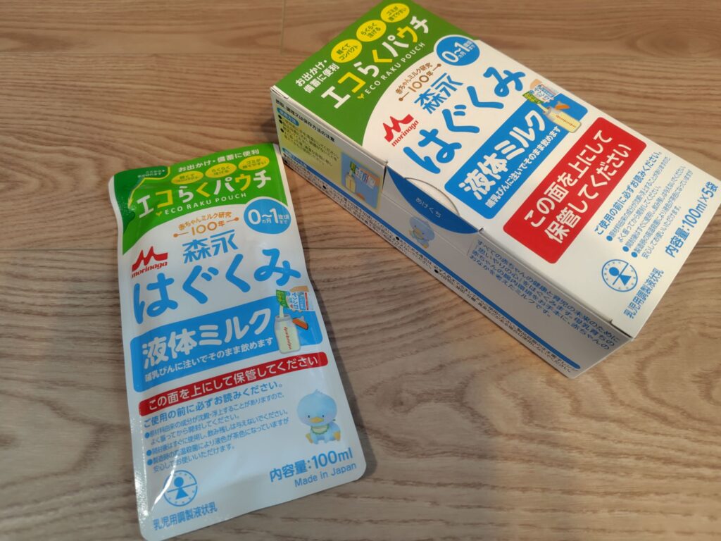 産院でいただいた別のメーカーさんの液体ミルクは、ごくごくと美味しそうに飲んでくれました。